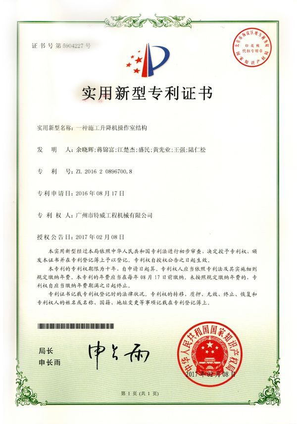廣州市特威工程機(jī)械有限公司地處廣州市白云區(qū)神山鎮(zhèn),廣清高速神山出口附近,是一家施工升降機(jī)的專業(yè)生產(chǎn)廠家。公司成立于2011年,占地100000多平方米,注冊(cè)資金1060萬元,現(xiàn)有員工300余人其中工程技術(shù)人員33人,高級(jí)技術(shù)人員52人。